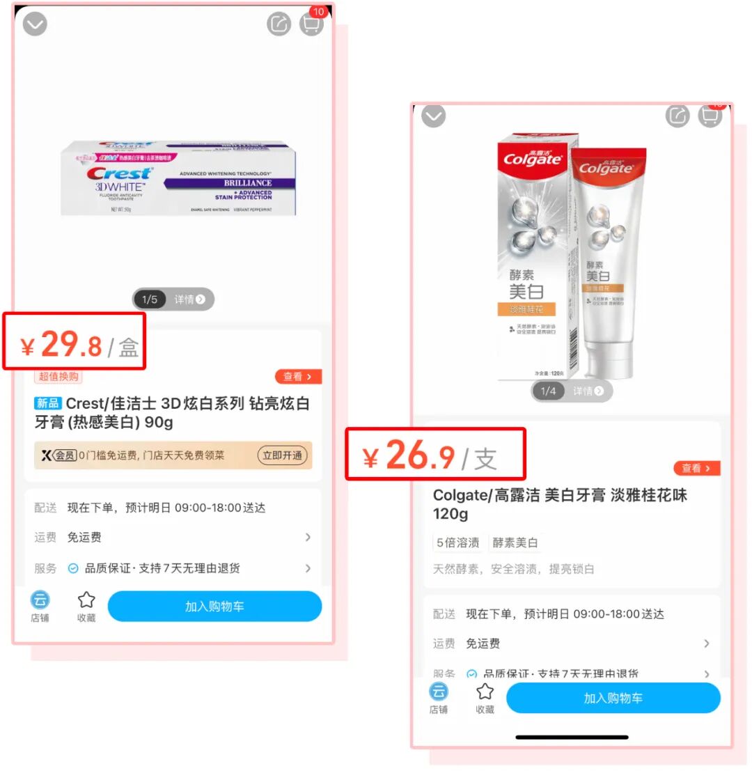 像高露洁、佳洁士这种大牌,一只100g左右的,都要接近30块了!
