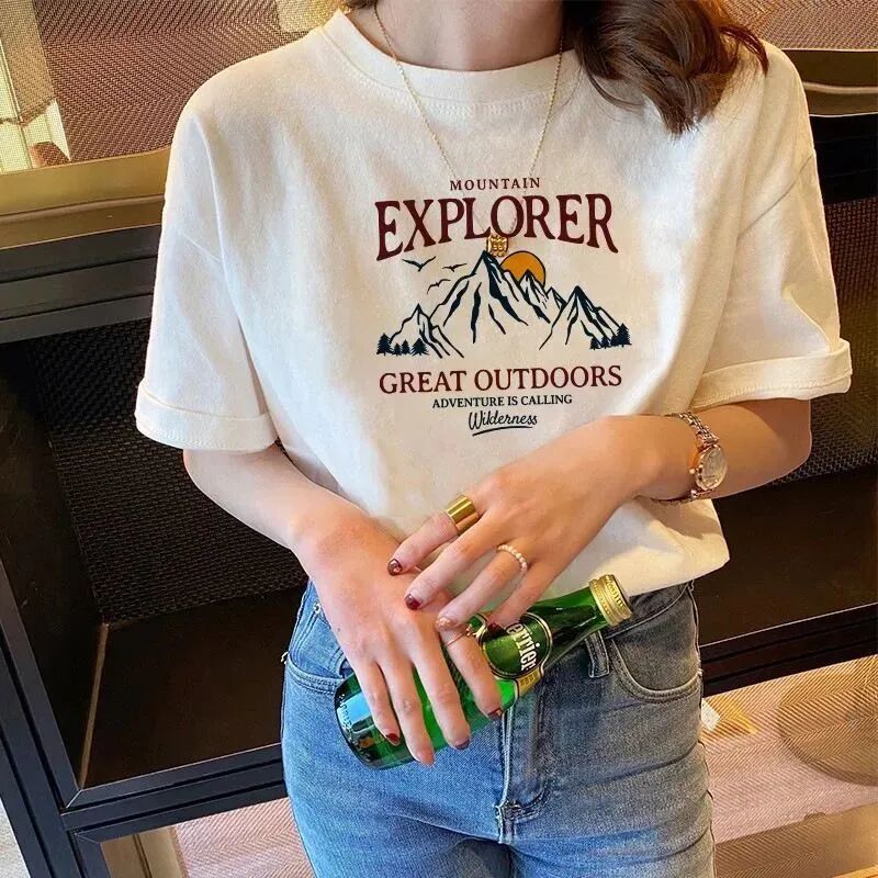 胸前印有简单的图案,相比纯色T,整体更有ins感。