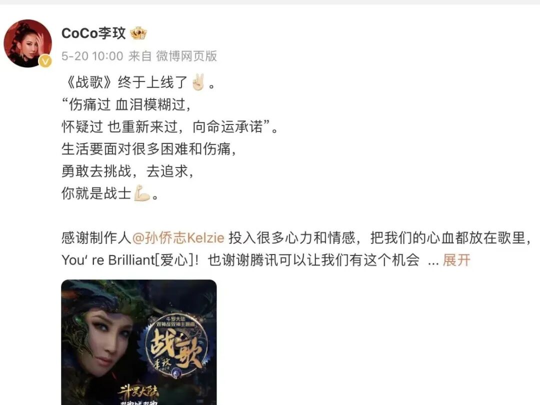 就在5月20日,她的新歌《战歌》上线,她还发文,用《战歌》的歌词向大家展现一个不屈的女战士形象: