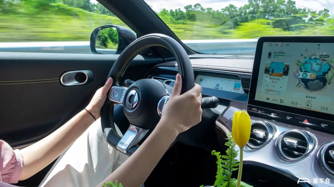 传统的线性叙事通常不是王家卫的选择,他更喜欢通过情感、氛围和视觉美学来推动故事的发展,《重庆森林》就是这样的一部电影。两个相互独立但又有所关联的故事,使得观众能够从不同的角度和时间线来感受角色的情感,镜头中的象征和隐喻,也反映了角色的内心状态和生活的无常。一直以来,情感、氛围和视觉美学都是电影艺术的重要元素,汽车设计同样也是一种艺术实践。设计师们借助创新的设计理念与技术来描绘情感、营造氛围,如同荧幕上的闪烁的影像,这些作品同样充满了生命力。源自梅赛德斯-奔驰全球设计团队的 smart 精灵 #3,延续「感性 · 灵锐」的设计哲学,将动感贲张的曲面,自然融汇于优美流畅的线条。这种对立且不冲突的设计,如同《重庆森林》里的角色,饱满自然。梅赛德斯-奔驰首席设计师戈登 · 瓦格纳(Gorden Wagener)丝毫没有掩饰自己的骄傲,他由内而外散发的自信与吸引力,在 smart 精灵 #3 上展露无遗。与前作精灵 #1 的不同之处在于,精灵 #3 在紧凑型 SUV 的基础之上融入了 coupe 的造型。为了拥有更舒展的尾部,smart 将车身加长了 13 厘米,用车身同色的车顶来突出线条,取消了行李架,原本位于 C 柱的 smart 徽标,也被移到了翼子板。尽管从 B 柱往前,smart 精灵 #3 与前作并无多大差别,但更具动感的车身轮廓依旧会让人眼前一亮。就像一部电影的成功不仅取决于大胆的叙事和视觉效果,更在于那些微妙的情感表达和精致的艺术细节,它们不一定增强了汽车的功能性和舒适性,但往往都体现了设计师的匠心独运和对美学的追求。是的,你能在这辆 smart 精灵 #3 看到不少这样的细节。比如,你能在前档上看到一辆突破重重障碍的小车。⬇️也许是为了塑造品牌形象和个性化特征,smart 非常喜欢在车内外的各个位置放上自家 Logo,不仅是在座椅里,还有这里。⬇️甚至连门把手上用于定位的凹陷,也做成了 smart 徽标的形状。当然了,最与众不同的还是 B 柱上的梅赛德斯-奔驰徽标,表示这辆车的设计,的确来自斯图加特。受限于篇幅,我无法一一放出所有徽标,它们还存在于迎宾踏板、方向盘、大灯内部等各个部件之上。总之,这辆 smart 精灵 #3 一定会是董车会今年试过的 logo 最多的车型(去年是精灵 #1)。这也并非坏事,尽管徽标的数量多,但每一处看起来都不会突兀。换个角度去想,如果你购买的是另一家斯图加特知名车企的产品,想要装上这么多的 logo,那得选配多少钱?smart 的试驾活动,总是有那么一点小不同,他们喜欢从晚上开始。至于目的,当然是为了展示 smart 的 64 色双区智能氛围灯。眼前的这些氛围灯可以配合 13 扬声器的 Beats 音响产生音乐律动的效果。但需要指明的是,这一功能只有顶配的 Premium 版本,和 BRABUS 性能版才会配备,入门的 Pro+ 车型和 Pulse 四驱版只搭载了一套 5 扬声器系统。smart 精灵 #3 的车机,和它的设计一样讲究。几何折线风的「smart 灵感星球」依旧出现在了精灵 #3 的 12.8 英寸中控大屏里,不一样的是,右下角的「你好 smart」精灵助手从精灵 #1 上的小狐狸,变成了如今的猎豹。smart 相关人员对董车会表示,之所以使用猎豹这一形象,是因为猎豹这种动物会更加契合精灵 #3 的运动型格。另外,这一全新的 Avatar 语音精灵助手拥有 40 个形象动作和 6 个专属动作,根据用户的不同操作,给予不同的反馈。「smart 灵感星球」最特别的,自然是中间的小星球,以及相关的交互动画。为了确保触屏及语音操作的流畅性,高通骁龙 8155 芯片自然是少不了的。smart 官方的说法是,高算力加持下的精灵 #3,打开车载 APP 的平均时长只要 1.09 秒,在董车会的实际体验中,也没有出现卡顿的情况。不过,在董车会看来,smart 精灵 #3 在软件层面最大的进步,还是把原来饱受用户吐槽的订阅模式给取消了。去年 12 月,smart 通过 OTA 升级上线了订阅包功能,提供按月支付、按年支付、永久开通三种订阅模式来开通座椅加热、座椅通风、以及方向盘加热功能,引起大量用户不满。在精灵 #3 上,smart 取消了订阅模式,全系标配前排座椅加热,前排座椅通风和方向盘加热成为了灵活选购项。所以说,把握好使用需求和潮流趋势还不够,所谓的「人性需求」,车企同样需要好好琢磨琢磨。真正开启这辆 smart 精灵 #3,压过停车场门口的减速带后,我的第一反应是:有时候,耳朵比眼睛还重要,很多东西用耳朵听比用眼睛看好。