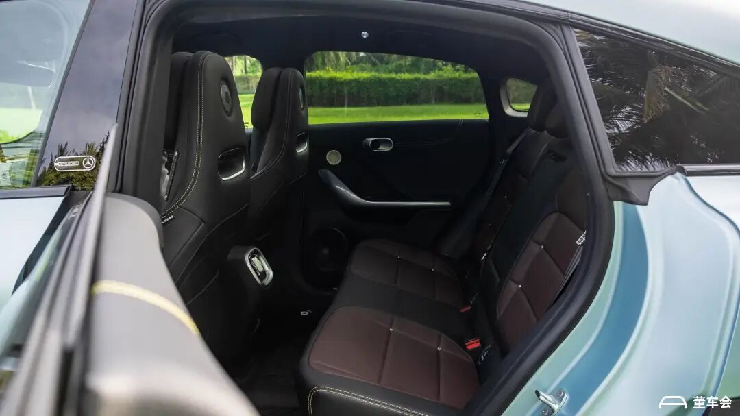 是的,悬挂这种看不见的东西,除了能用身体去感受,我们还可以靠听。倘若你和我一样开着精灵 #3 驶过减速带,你一定会听到「哐当」、「哐当」两声巨响。若要从驾乘感受来看,smart 精灵 #3 开起来甚至比特斯拉 Model 3 还要硬,Model 3 起码还拥有一张较软的座椅,而精灵 #3 的椅子,坐久了甚至会有点麻。不过硬归硬,这张座椅的支撑性还是值得肯定的,只是上下车时,小心别被坐垫侧翼硌到了。后排空间尚可,但矮小的坐垫和较硬靠背,导致乘坐感受一般smart 官方给精灵 #3 的定位是「激能都市密友」,但在董车会看来,最适合这辆车的地方还是山路。随着车辆从城市驶向远郊,原本针对悬架的抱怨全都变成了夸奖,所有能够影响驾驶乐趣的基础素质,都在这辆车上得到了印证。董车会这次拿到的 Pulse 四驱版配备双电机智能四驱系统,能够根据行驶工况实时切换驱动模式,在全时四驱模式下,精灵 #3 既有四驱的稳健,同时具备大马力后驱车的灵活。它的动力基础来自两台永磁同步电机,综合功率为 315kW(422 马力),峰值扭矩 543N·m,官方的零百成绩为 4.3 秒;BRABUS 性能版还多了弹射模式和模拟声浪,零百加速提升至 3.6 秒。总之,不要把你对于 smart 精灵 #1 的印象搬到这辆精灵 #3 上,后者一点都不「都市」。其实了解一个人并不代表什么,人是会变的,今天他喜欢凤梨,明天他可以喜欢别的。