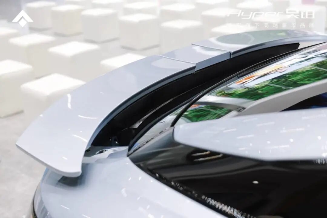 Hyper GT 的三段式尾翼支持语音唤醒,依靠座舱内的语音识别可以完成自主的升降。当然,在实际的驾驶路况下,三段式尾翼和前脸的进气格栅能够根据实际的车速完成开合调整,带给 Hyper GT 更强的下压力。
