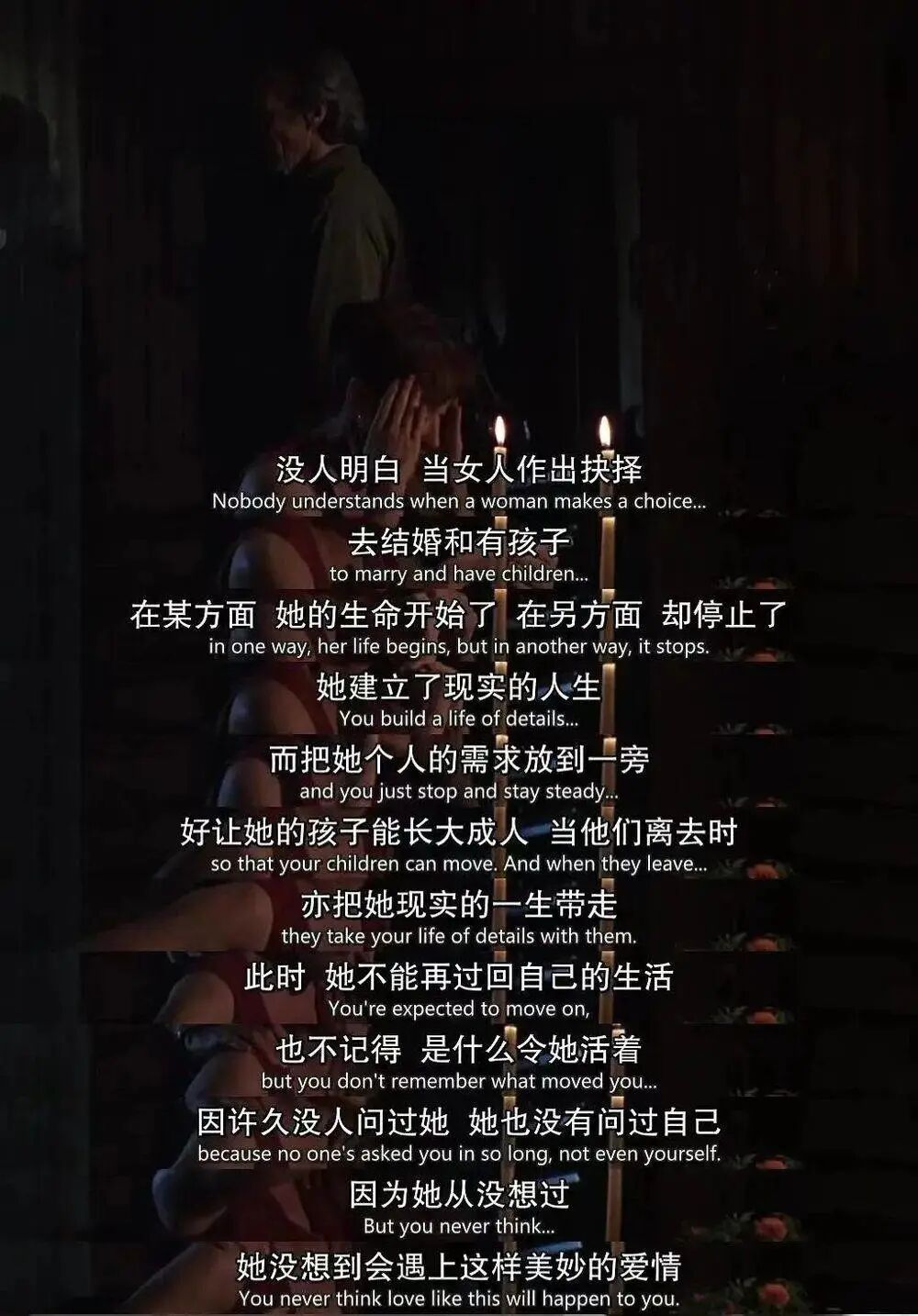 《雷雨》中徘徊于继母繁漪和同母异父的妹妹四凤之间的周萍,深陷于自我的罪恶感,最终选择自杀;《廊桥遗梦》中支撑着丈夫和孩子们安稳生活的弗朗西斯卡,在滂沱大雨中诀别一生一次的爱情……