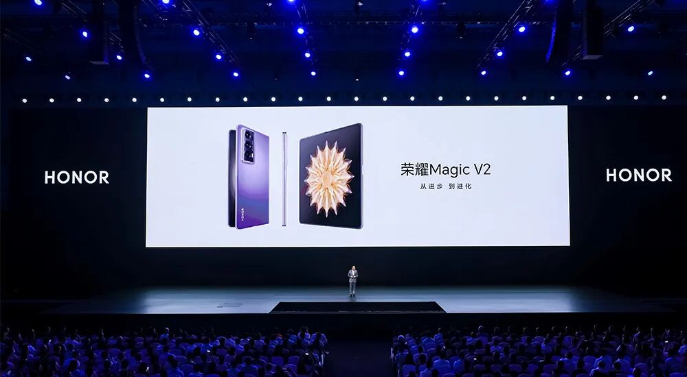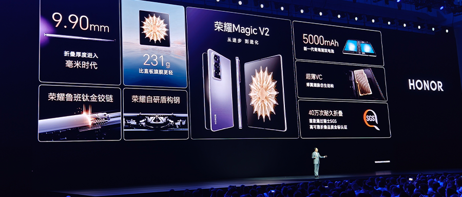 作为消费电子产业的风向标的苹果公司,一直是不少安卓手机厂商学习追赶的对象。但当智能手机产业发展迈入“微创新时代”,即使是苹果的iPhone也很难再给人带来振奋人心的创新。产业似乎正在呼唤一次颠覆式创新,呼唤新的玩家做出改变,为产业注入新的变量,搅动市场格局。就在今晚的北京水立方,荣耀CEO赵明正式登台发布了荣耀Magic V2。值得一提的是,我们很难将Magic V2简单定义为一部直板机或是一部折叠屏,因为其产品的特性已经打破了直板机和折叠屏的边界,成为了一个“新物种”。![]()