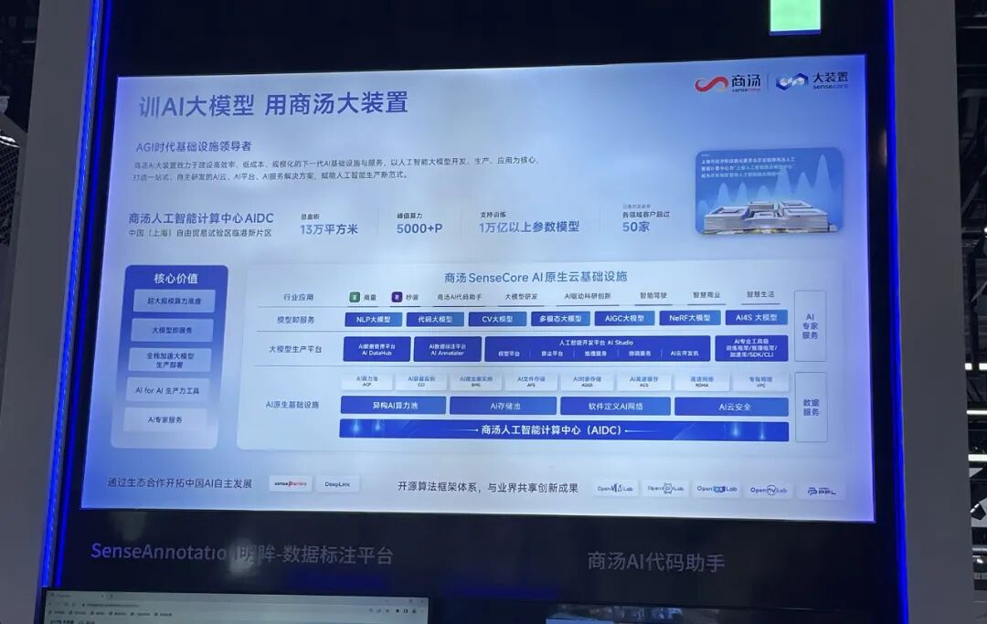 商汤科技“日日新sensenova”大模型体系同样旨在降低AI应用开发门槛,包含NLP、内容生成、自动化数据标注、自定义模型训练等多种大模型及能力。同时商汤亮出“训AI大模型,用商汤大装置”的口号,展示了商汤SenseCore AI原生云基础设施架构图。![]()