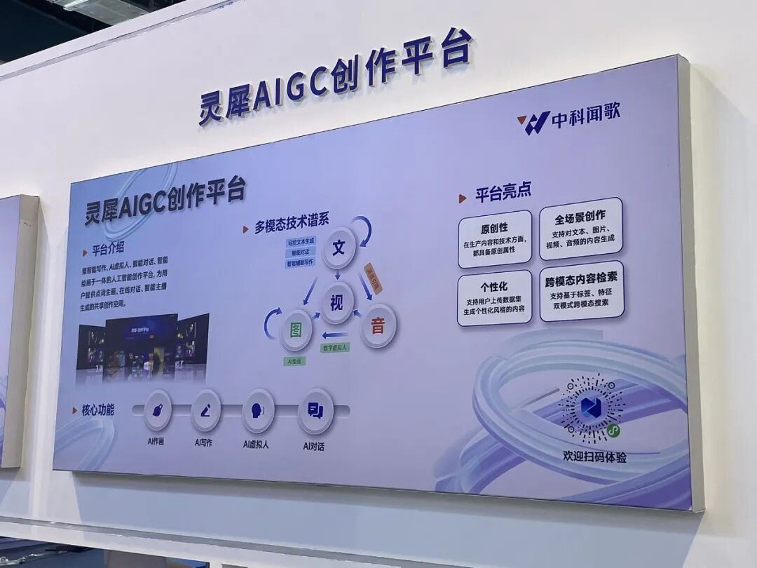 除此之外,网易有道现场展出了包括有道词典笔、听力宝、AI学习机等在内的一系列智能学习硬件,有道词典笔有望是有道自研大模型率先落地应用的核心产品之一,在WAIC展会上首次面向公众展示“AI口语教练”能力。达闼机器人展出的多职能配送服务机器人Mover Mini D系列,拥有达闼自研云端大脑及多模态大模型RobotGPT,不仅能高效完成配送服务,还能说会道、越用越聪明。此外,达闼机器人打造的行业多模态大模型产品达闼RobotGPT一体机,旨在解决企业面向特定行业的生成式AI大模型推理、训练或混合推训及应用私有化部署等刚需。中科闻歌的灵犀AIGC创作平台集智能写作、AI虚拟人、智能对话、智能绘画于一体,支持对文本、图片、视频、音频的内容生成,为用户提供了点词生画、在线对话、智能主播生成等共享创作空间。![]()