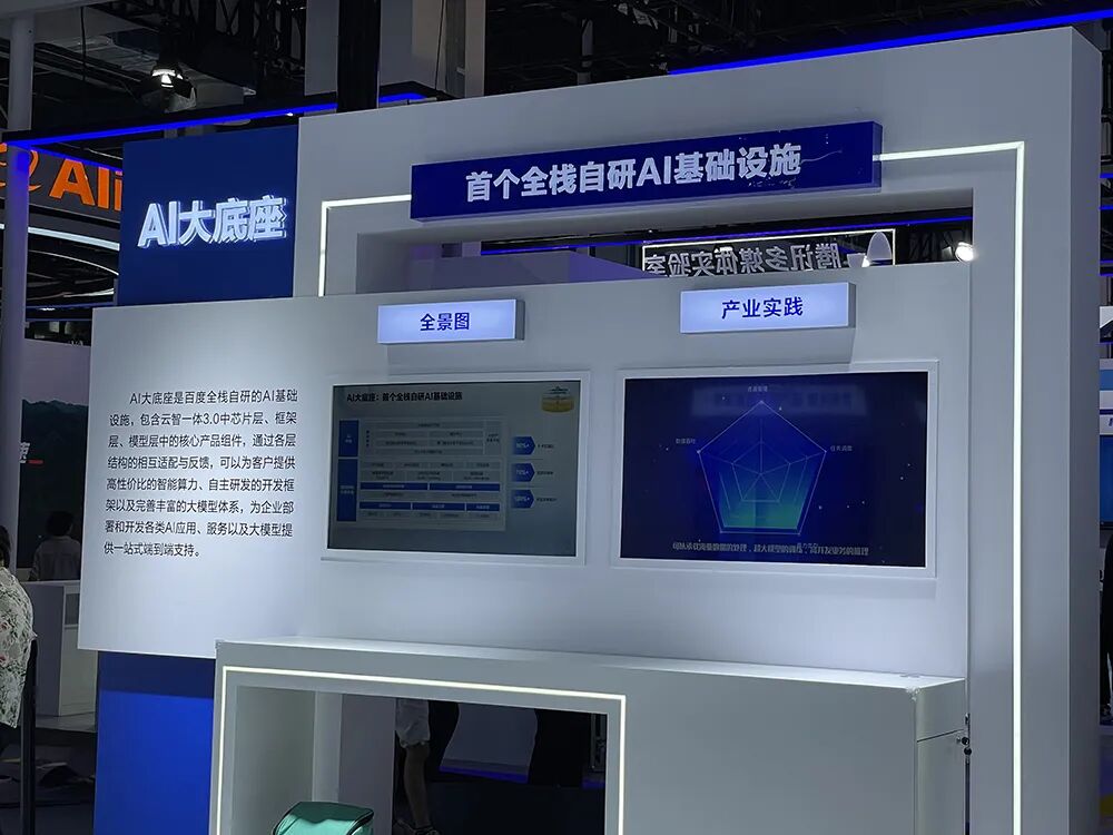 百度除了展示文心一言、首个一站式企业级大模型平台文心千帆外,也重点展出了百度全栈自研的AI基础设施AI大底座,提供智能算力、开发框架及完善丰富的大模型体系,为企业部署和开发各类AI应用、服务以及大模型提供一站式端到端支持。![]()