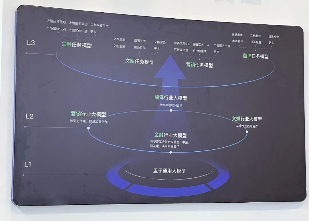 声智科技展示的声智壹元模型(AzeroGPT)提供安全的私有化部署、可信的行业化训练、专业的生成式推理解决方案,并推出单机10块GPU总计800G超大显存超级服务器,为行业用户根据自身数据规模和应用场景定制训练10亿至1800亿参数的行业垂直模型。衔远科技自研通用AI大模型拥有数百亿参数规模,通过ProductGPT为企业与消费者以生成式AI能帮助从商品洞察、定位、设计、研发到营销的创新。维智科技基于时空AI的千亿级参数量城市AI大模型CityGPT,覆盖深度学习、时空知识图谱、多模态、NIP等基础模型和面向城市治理、金融、品牌、零售等众多行业模型。![]()