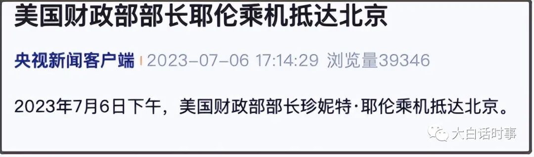 今天下午5点左右,美国财政部部长耶伦抵达北京,预计7月9日离开。接待人员是中国财政部国际经济关系司司长,以及美国驻华大使伯恩斯。包括7月3日,宣布耶伦访华的通稿里,也是用“经中美双方商定”。