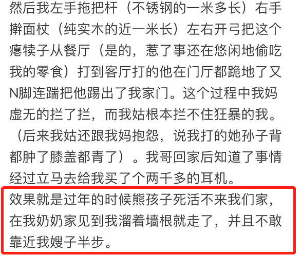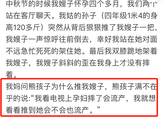 可回到家中,俨然换了一副模样,稍有不顺就摆脸色,动不动就发脾气。可为什么,我们总是把好脾气留给外人,而把坏脾气留给家人呢?指的是,当人们遇到挫折时,会放弃已经习惯的成人方式,转而退化到用小孩子的方式,去回避现实,摆脱痛苦。无论说了多难听的话,做了多出格的事儿,家人都会无条件原谅我们。前段时间的热播剧《人世间》,有一幕场景让人印象深刻。她很生气,也很委屈,但这些情绪她没办法冲单位撒,所以就撒到了家人身上。儿子只是弱弱地跟外公吐槽了句:“我不喜欢住小房子”,乔春燕的火气一下子就上来了。她喊着说:“不喜欢住这儿就滚,你妈没本事,只能让你住这儿。”乔春燕的爸爸劝她:“你吓着孩子了,你说你跟孩子较什么真呢?”“您少抽点烟吧,别回头像德宝他爸一样得脑血栓了,家里的事已经够多了。”“曹德宝,别搬了,这些家具都送人吧,实在没人要扔马路上,让人捡去。听过一句话:“这个世界上所有包容你坏脾气的人,都是最在乎你的人。”而我们之所以,把最好的一面留给外人,把最糟糕的一面留给家人,就是因为我们知道:因为,家人会无条件接受你的坏脾气,他们,会包容你,忍让你,理解你。就因为,得罪家人不需要付出代价,所以就卸下伪装,把家人当成出气筒。家是一个充满爱和温暖的地方,并不是你坏情绪的发泄场所。我们可以发脾气,但不该把所有的坏情绪,都留给家人。中秋节的时候,她和嫂子站在客厅聊天。当时,嫂子怀孕4个多月。她姑的孙子,一个身高1米4,体重120多斤的四年级男生,突然从背后狠狠推了嫂子一把。嫂子一声惊呼往前倒去,幸好她站得不远,急忙死死架住嫂子,才没有摔倒。“我看电视上孕妇摔了会流产,我就想看看推倒她会不会也流产。”然后,她左手拖把杆,右手擀面杖,左右开弓把熊孩子从餐厅打到客厅,并连打带踹把熊孩子踢出了家门。在奶奶家见到她溜着墙根就走了,并且不敢再靠近她嫂子半步。你可以在家人面前,撒泼任性发脾气,但社会不是你爸妈,没人会惯着你。为什么我们都把好脾气留给外人,却把坏脾气和最糟糕的一面留给最爱你的人?外人不会惯着我们,所以我们不敢得罪,态度会客气,情绪会温和。不是没有脾气,而是明白,为了生活,有些时候不得不低头。发泄情绪只是图一时痛快,背后的代价有可能超出我们的想象。即使你冲他们发火动怒,他们往往也会站在你的角度,体谅你、理解你。我们的礼貌和尊重,温和和柔软,也应该留给家人一点。面摊老板是一位和蔼的老奶奶,看她可怜,给她端来一碗馄饨和一碟小菜。那你妈妈煮了十多年的饭给你吃,你怎么不感激她呢?为什么还要跟她吵架?我们会对别人给予的一点小恩小惠“感激不尽”,却对家人一辈子的恩情“视而不见”。不仅没有感激,反而认为是理所当然,甚至肆意消耗着家人的爱。但这世上并没有所谓的理所当然,所有理所当然的背后,只不过是有人在默默爱着你。我们可以感激别人的付出,却做不到看到并感激家人的付出。对待家人,更多的是百般挑剔,是有恃无恐,是熟视无睹。“对亲近的人挑剔是本能,但克服本能,做到对亲近的人不挑剔是种教养。”一个人,在外的好脾气,可能是生活所迫,是处世的圆滑。而在家的好情绪,才是真正深入骨髓的修养,也是一个人最难的教养。他们也值得被用心守护,好好对待,而不是承受着我们的坏脾气与烂情绪。如果说,“一个人对家人暴躁,对外人和气”,是一种人性的弱点。那么,该如何克服这一弱点呢?我们可以从这两方面来努力:面对自己不想做或不能做的事情,学会表达自己的态度,也很重要。不管是人际交往,还是说话做事,只要自己没错,就没必要过分迁就别人。在外面遇到委屈和难过时,我们可以先把情绪处理好再回家。家人的出发点是什么?是为我们好吗?如果是,有没有更好的方式来沟通?要知道,脾气谁都有,拿出来是本能,压下去才是本事。亲人只有一次的缘分,无论这辈子我和你会相处多久,你一定要珍惜共聚的时光。往后余生,愿我们都能善待家人,与他们温柔相处,度过圆满幸福的一生。共勉。