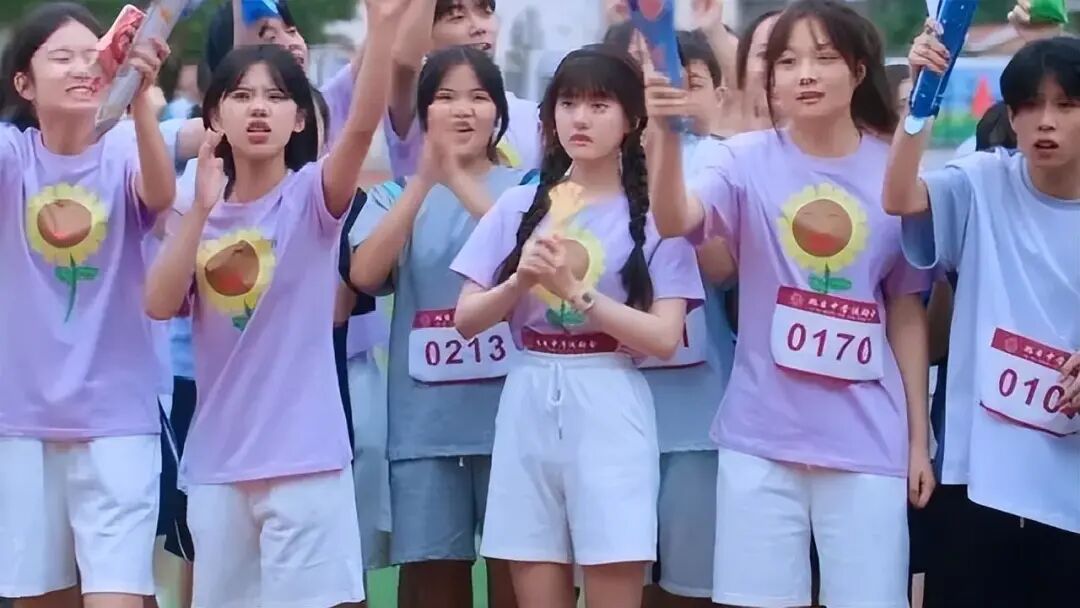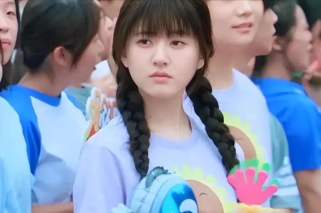 在为同学们的啦啦队加油时,赵露思就毫无表情地站在群演旁边,甚至没有旁边活跃的群演表现得真实自然。