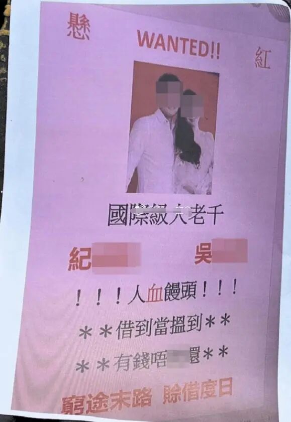 有媒体报道,在香港街头出现了两张追债海报,海报上写着纪姓富商是“国际大老千”,吃人血馒头,借钱不还,穷途末路,借钱度日。