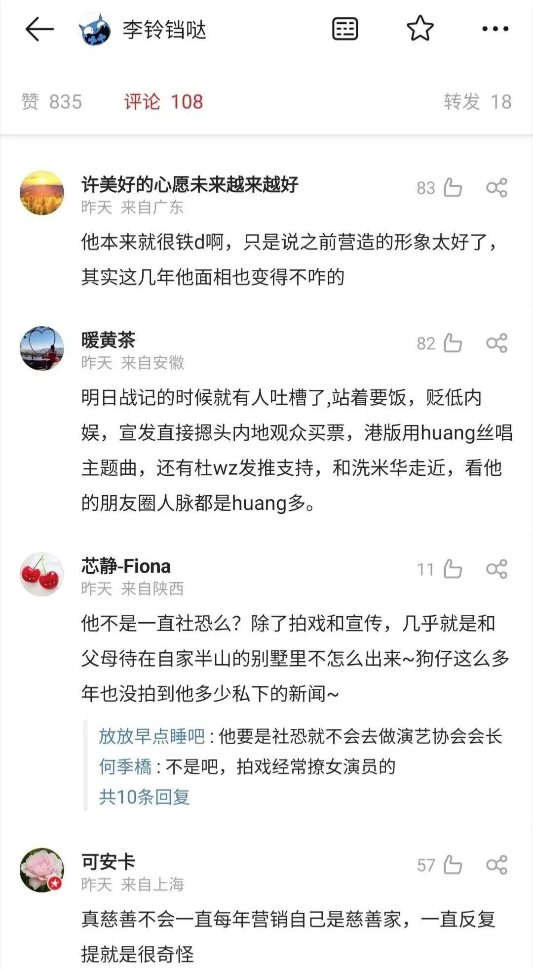 甚至有网友的评论也开始变得不友好,说他的品行有问题。