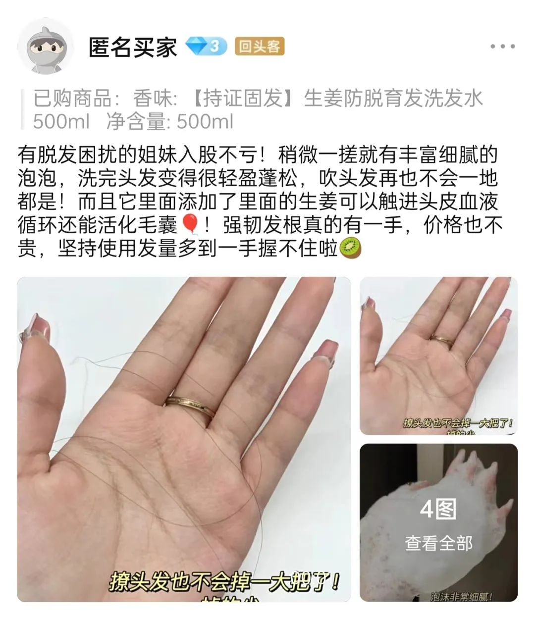 生完妹妹后,脱发特别严重,一梳头发大把大把的掉,心情非常复杂。这款儒意生姜洗发水是老公做了非常多功课才入手的,好在洗完一瓶后,洗头基本不掉了,谢谢老公这么贴心~