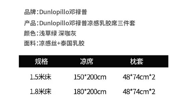 邓禄普这款乳胶凉席,内芯采用整张泰国进口天然乳胶!