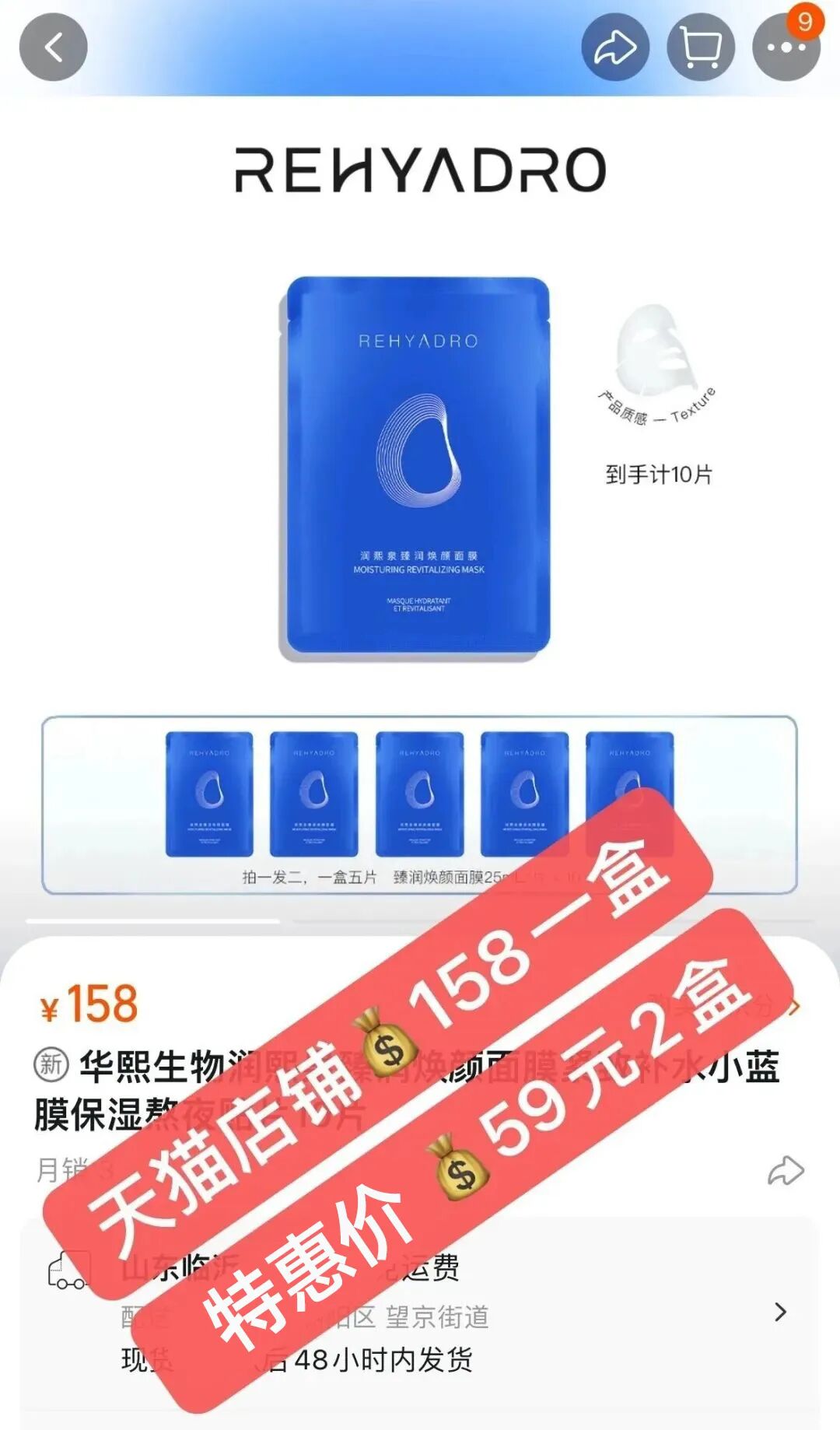 但华熙生物出的产品性价比都很高,润熙泉面膜也如此,官方定价158元,没毛病吧?!