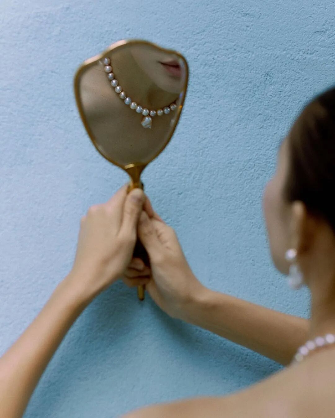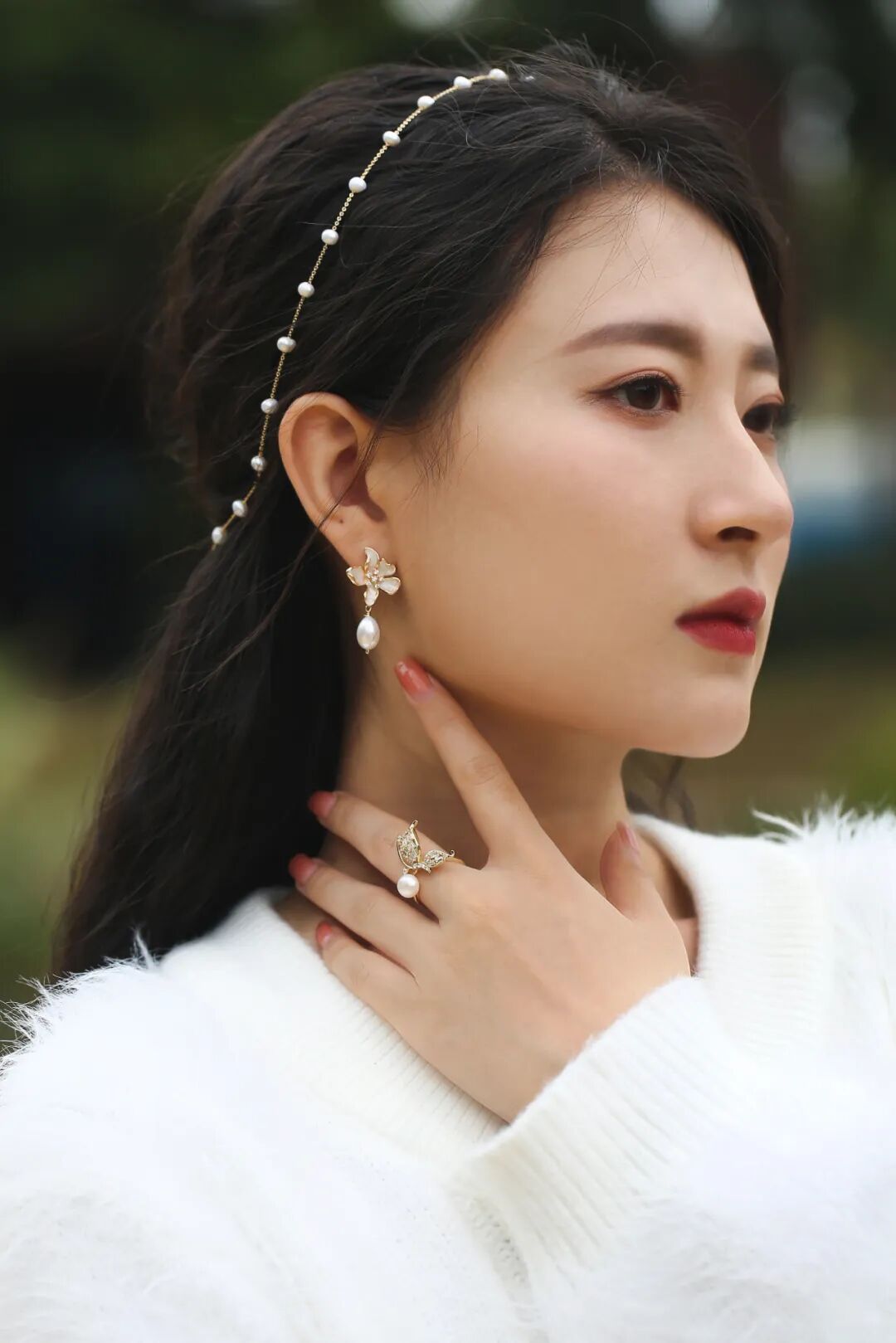 设计师采用如梦境般极简的线条搭配淡水珍珠,简约而不平凡美仿佛在轻语一个秘密。