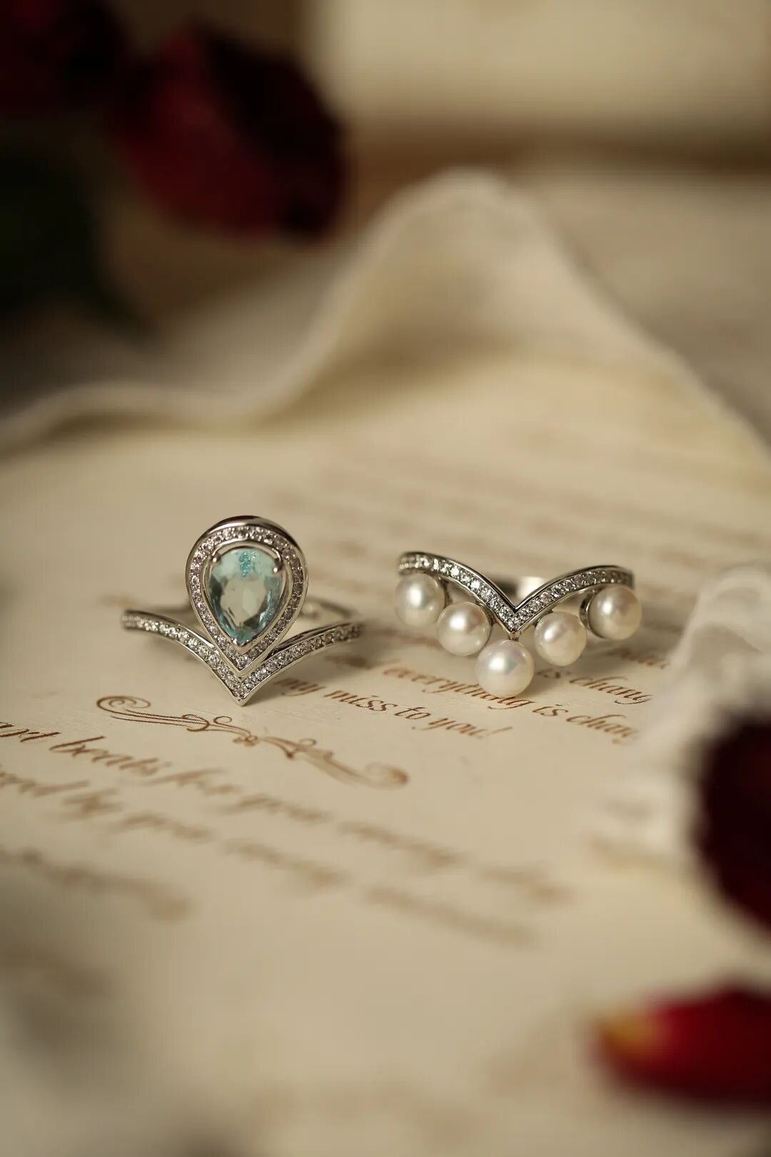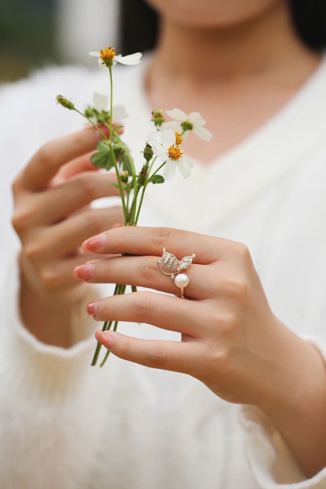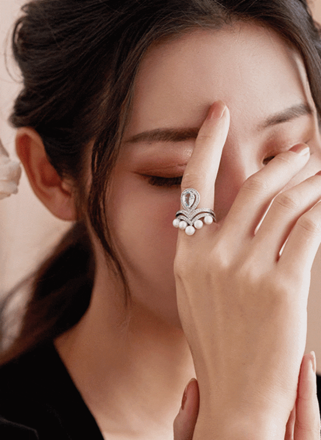 锆石水晶点缀,把璀璨耀眼的光芒洒在指尖;搭配一颗淡水珍珠,像是清晨的露珠,呈现出恬静雅致、灵动自然的品性。
