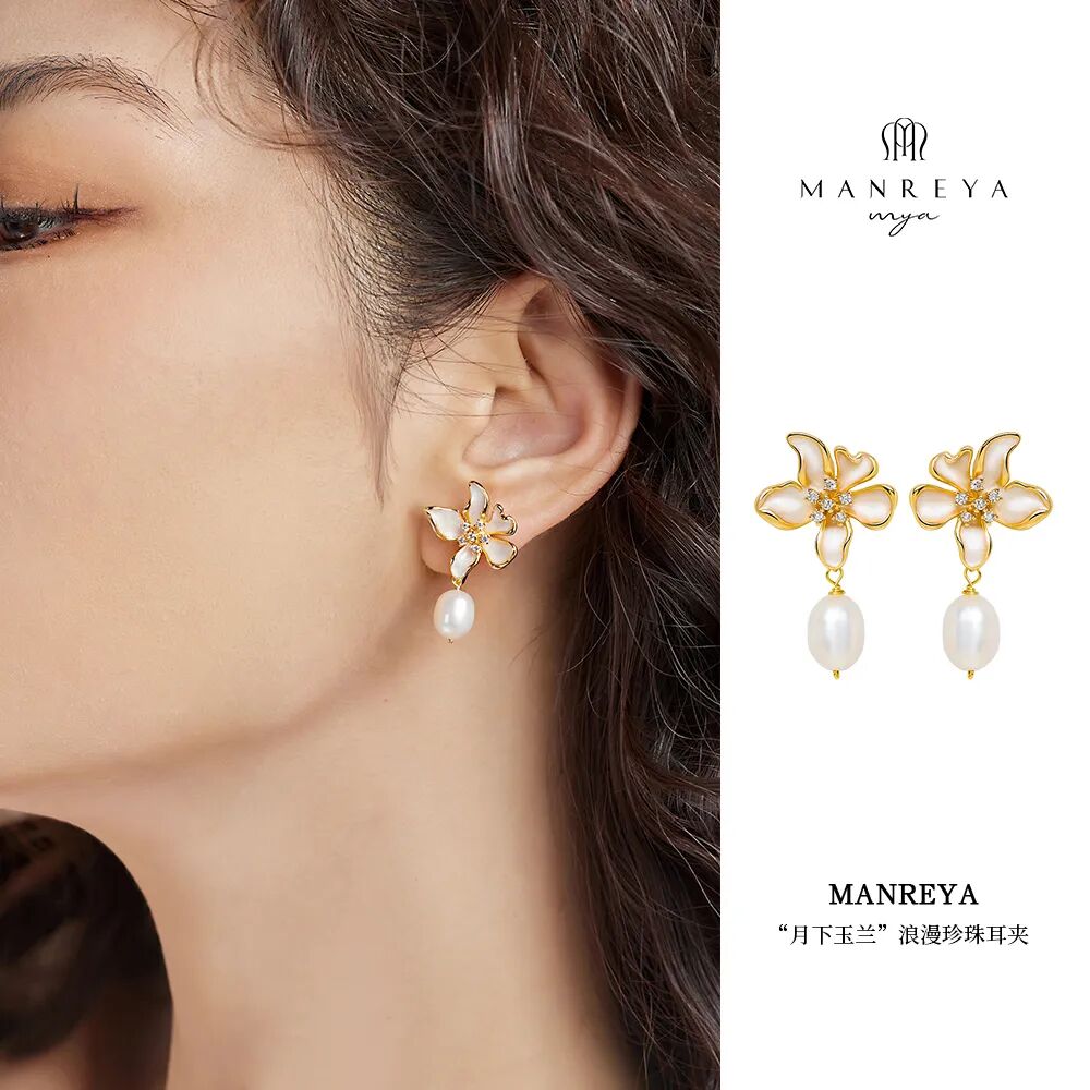 “月下玉兰”浪漫珍珠耳夹,现在优惠价是98元!