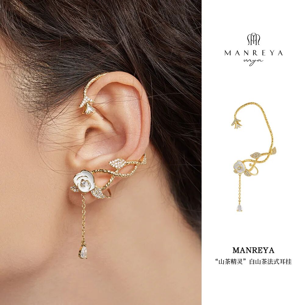 不造型灵动,而且佩戴的舒适感也很强,山茶的枝条有一定的柔软度,可以调节来适应不同的耳廓大小。