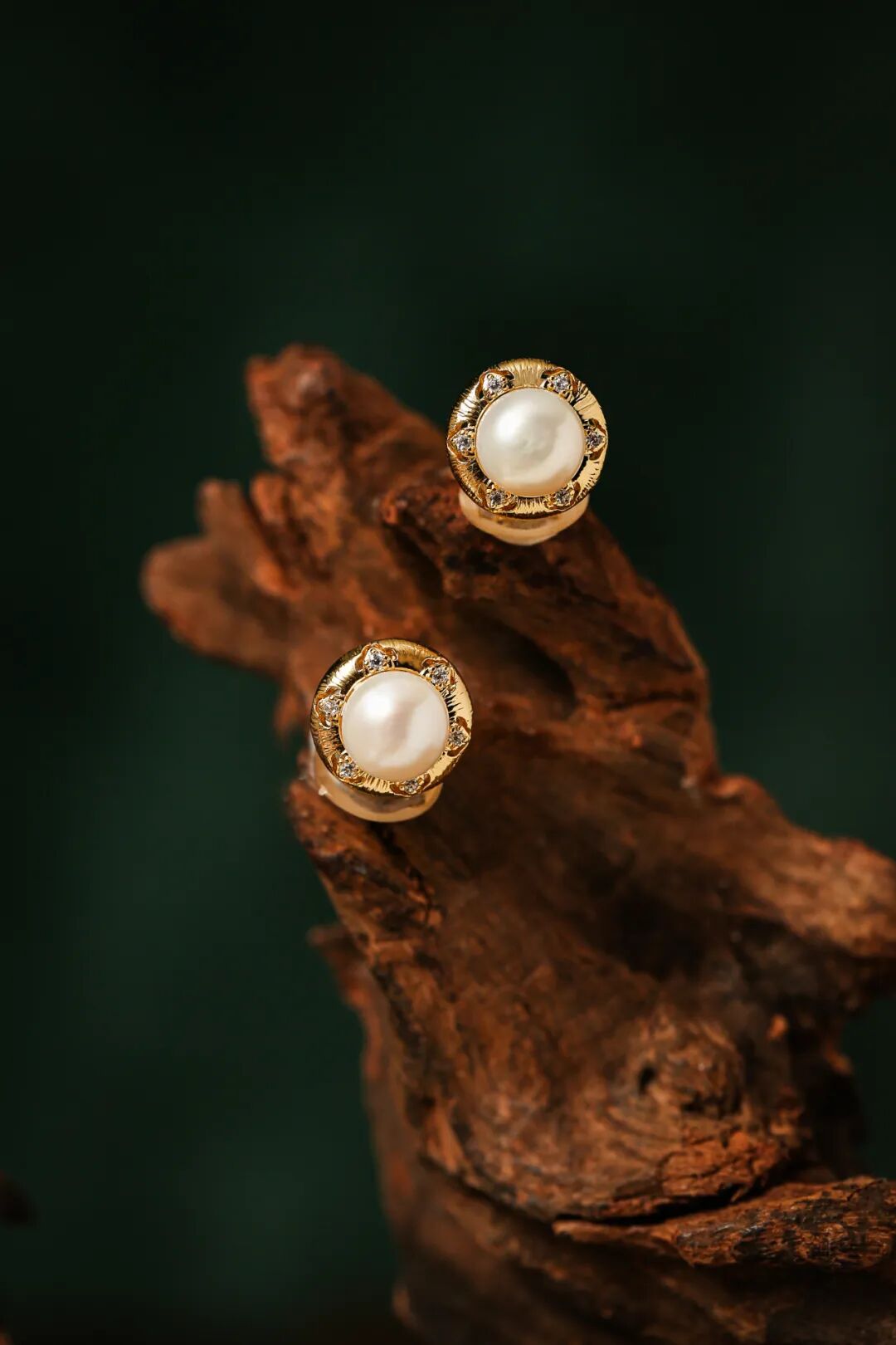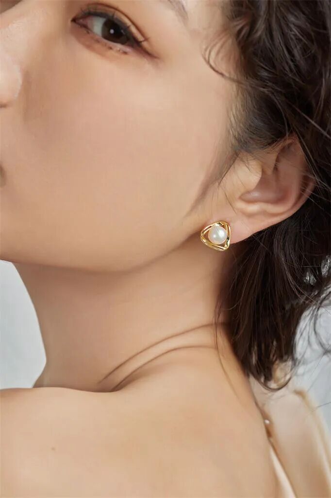 设计足够简约,简单的淡水珍珠元素搭配铜镀金包边,有种素净清冷的的美。