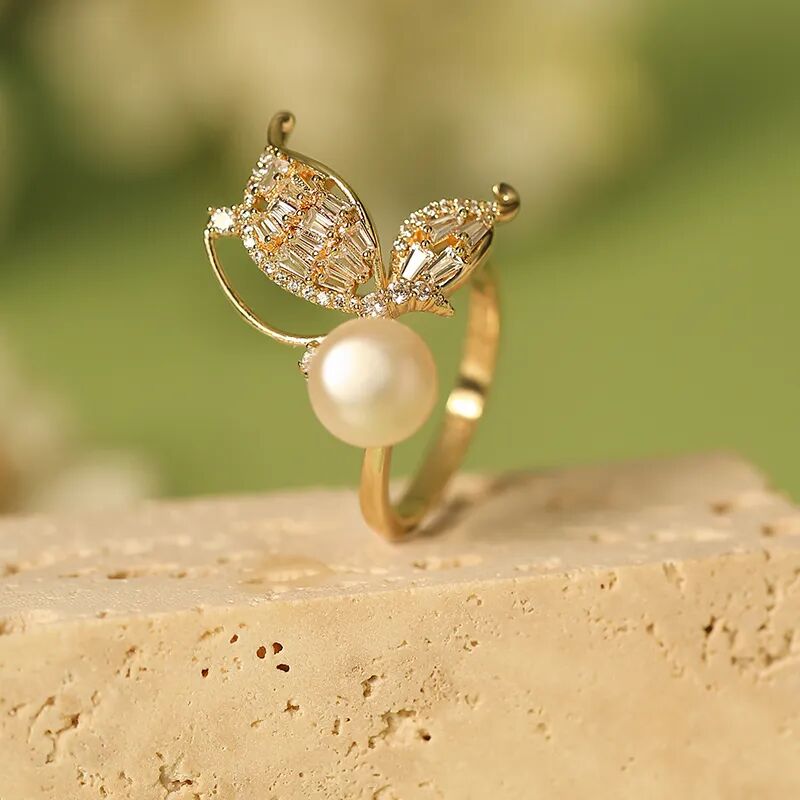“绮梦蝶”奢华锆石珍珠戒指,之前价格是128元,现在优惠价格是79元!