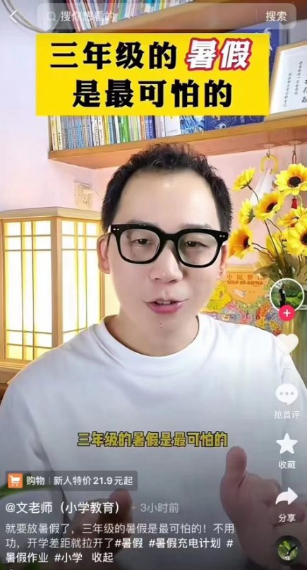 又到了一年一度的暑假季,要是自家孩子正处于学习的关键时间那可不能一直玩,要趁这个时间好好补课。不是想逼着孩子学,而是在关键年级的暑假一旦放松那带来的后果太过可怕。那到底几年级才是关键年级呢,到底几年级的暑假不补课的后果才最可怕呢?这个问题在短视频领域掀起了大争论,也吸引了无数家长的注意力。一位叫王老师的短视频博主率先发言,说一年级的暑假是最可怕的,不努力,开学差距就拉开了。面对镜头王老师侃侃而谈,告诉你为什么一年级的暑假最可怕,必须要让孩子在这个时间段努力学习。但随后一名自称为小顾学长的小学家长于6月9日发表了不同看法,他认为二年级的暑假是最可怕的,不用功,开学差距就拉开了。面对镜头小顾学长侃侃而谈,告诉你为什么二年级的暑假最可怕,必须要让孩子在这个时间段努力学习。但随后一名自称为文老师的短视频博主发表了不同看法,他认为三年级的暑假是最可怕的,不用功,开学差距就拉开了。面对镜头文老师侃侃而谈,告诉你为什么三年级的暑假最可怕,必须要让孩子在这个时间段努力学习。但随后小顾学长发表了不同意见,在6月8日发表了短视频,认为四年级的暑假是最可怕的,不用功,开学差距就拉开了。面对镜头小顾学长侃侃而谈,告诉你为什么四年级的暑假最可怕,必须要让孩子在这个时间段努力学习。但随后小顾学长又又发表了不同意见,推翻了自己的看法,在6月20日发布了短视频,认为五年级的暑假是最可怕的,不用功,开学差距就拉开了。面对镜头小顾学长侃侃而谈,告诉你为什么五年级的暑假最可怕,必须要让孩子在这个时间段努力学习。很有趣的是,很多短视频连台词都是几乎一模一样的,一年级的暑假为什么最可怕,把一改成五,就成了一条五年级的暑假为什么最可怕的短视频,博主对着镜头念一遍就行了。从六年级的暑假为什么最可怕一直到高二的暑假为什么最可怕,全都有。总结下来就是每个年级的暑假都是最可怕的,只有高三的暑假不可怕。这些短视频的宣传手法高度一致,常用话术包括但不限于:除了每个年级的暑假都最可怕之外,具体到学科来看,每个学科又都最重要。如果是语文老师,那就是“古文是孩子成绩的分水岭”。如果是英语老师,那就是“英语是很多孩子拉分项,要提前学”还有更离谱的全科老师或者教育机构,那话术就变成了“样样都不能放松,科科都必须重视”。不学别人家的孩子就是“快赶超”,你的孩子就会“被甩掉”,时间只要一个暑假。然后还对你道德绑架,你要是不听他们的那就是“毁孩子一生”。天呐,暑假不到他们那补课自家的孩子就会被毁一生,这暑假果然是太可怕了。这种“X年级的暑假最可怕”或“X年级是决胜局”之类的短视频,同质化严重、观点雷同、粗制滥造,流水化作业,大量复制大量传播,引发大量家长对孩子教育的焦虑。讲述一些“牛娃”故事,摆出一个“教育权威”造型,恐吓一下,贩卖一些焦虑,然后就可以随便指点家长应该如何如何,要减轻焦虑就只能掏钱上他们的补习班。有一篇《月薪三万,还是撑不起孩子的一个暑假》的文章在家长们的朋友圈热传,一位当高管的妈妈月薪三万,孩子读五年级,放暑假了,自己对孩子的教育很焦虑,为减轻焦虑被迫花了很多钱。根据这位高管妈妈的自述,让女儿去了一趟美国游学,10天花了2万元;女儿一个人在家请阿姨照顾,5000元;每周两节钢琴课,200元一节,一共2000元;游泳班2000元;英语、奥数、作文3科培训班6000元,一个暑假花了3.5万元。“去年暑假,我儿子也报了培训班,一个月时间,每天2个小时,600元/小时,期末考试孩子的英语70多分,暑假结束,新学期开学考,英语40多分,3万多元打了水漂。”