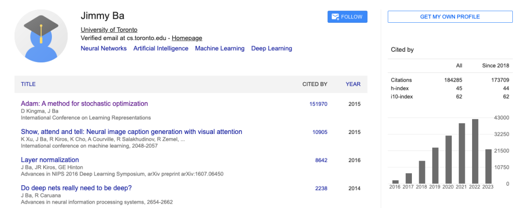 相比前几位来自产业界,Jimmy Ba 则是来自学术界。其本科和研究生均毕业于多伦多大学,后是在人工智能教父 Geoffrey Hinton 的指导下完成了博士学位。