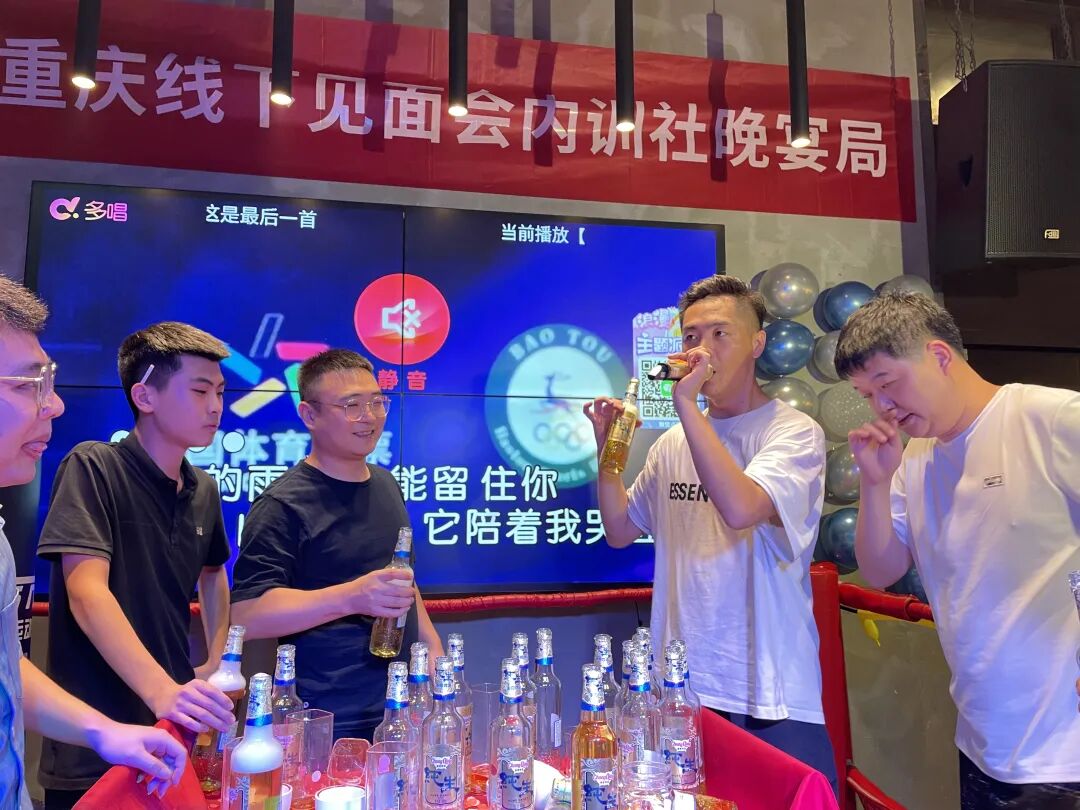 那晚到场的还有我的四个门徒,在我歇菜之后,其中一位叫子龙的门徒替我接过主持棒,在擂台中央展吼高歌。酒至兴处,感谢我的同时,还邀请了我另外三位门徒一起上台举杯。
