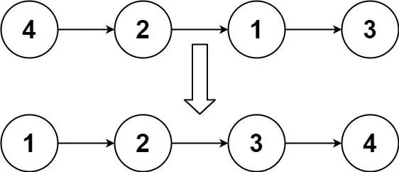 [0, 5 * 10^4] 内-10^5 <= Node.val <= 10^5进阶:你可以在 O(n log n) 时间复杂度和常数级空间复杂度下,对链表进行排序吗?