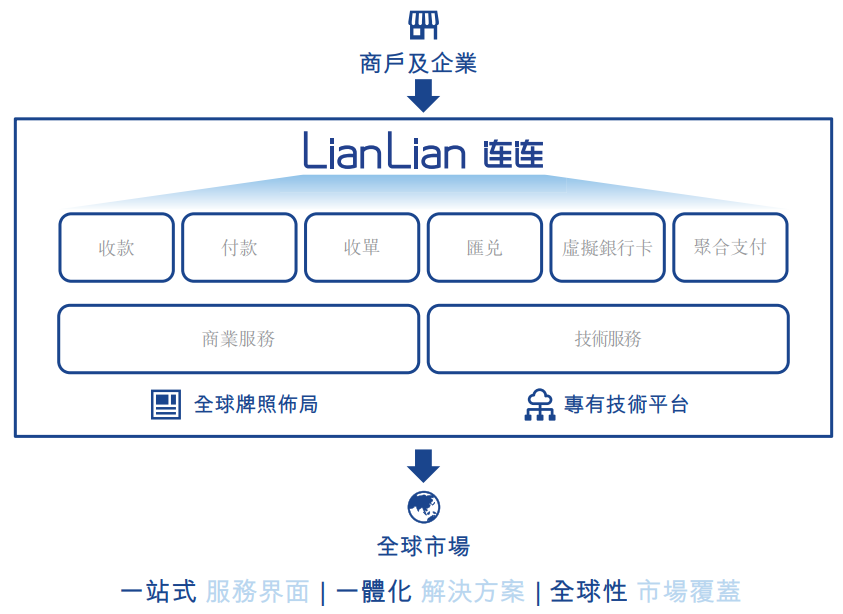 连连数字的综合数字解决方案向跨境商户和企业,提供收款、付款、收单、汇兑、虚拟银行卡及聚合支付等服务。
