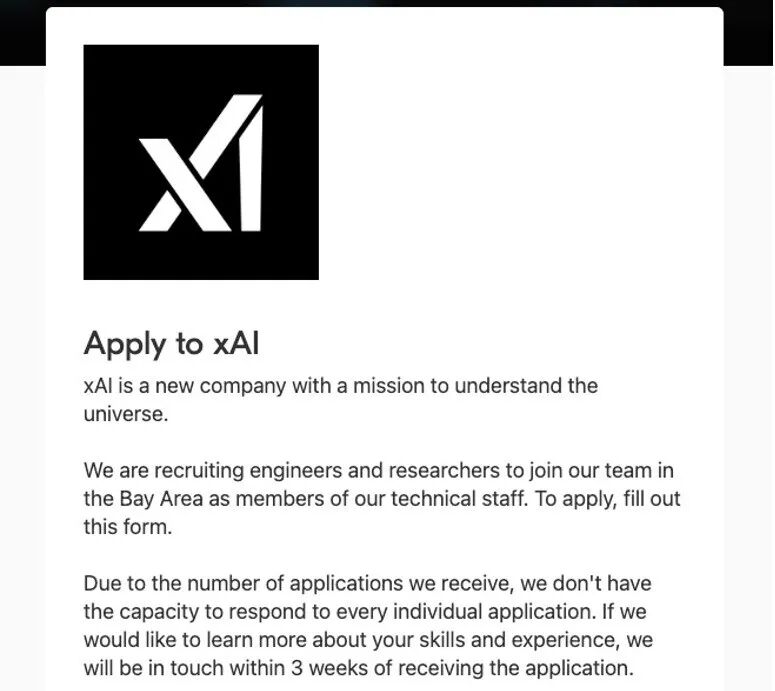 根据xAI官方页面显示,目前xAI也在积极招聘优秀的工程师和AI研究员。