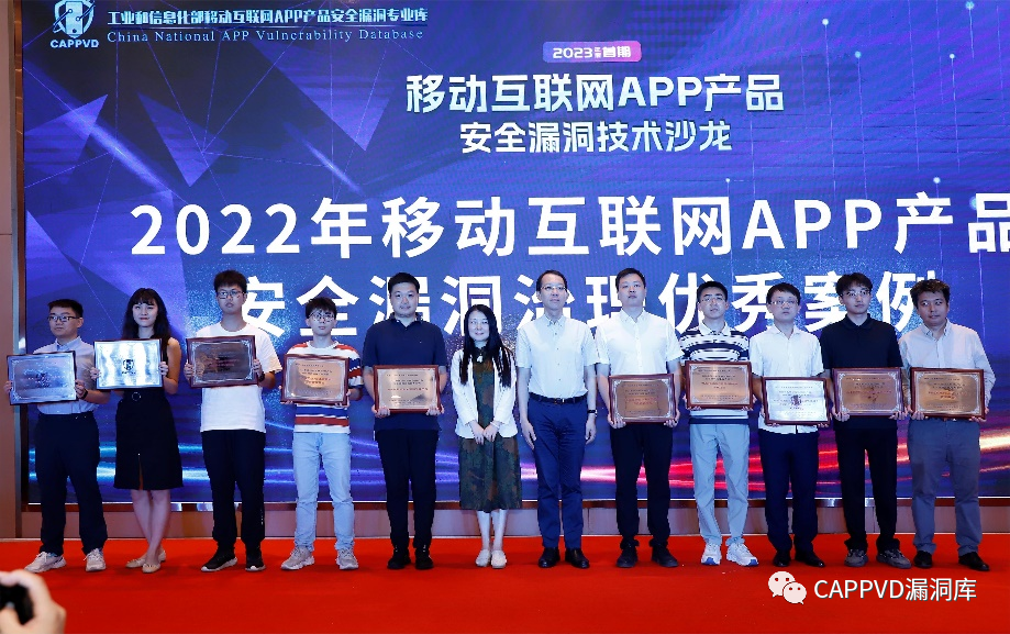 为鼓励全社会积极参与移动互联网APP产品安全漏洞治理,联合行业力量支撑国家APP产品安全漏洞管理工作,沙龙上公示了2022年度移动互联网APP产品安全漏洞治理十大优秀案例以及2023年度CAPPVD漏洞库新增技术支撑单位,并且为相关单位颁发了奖牌和证书。
