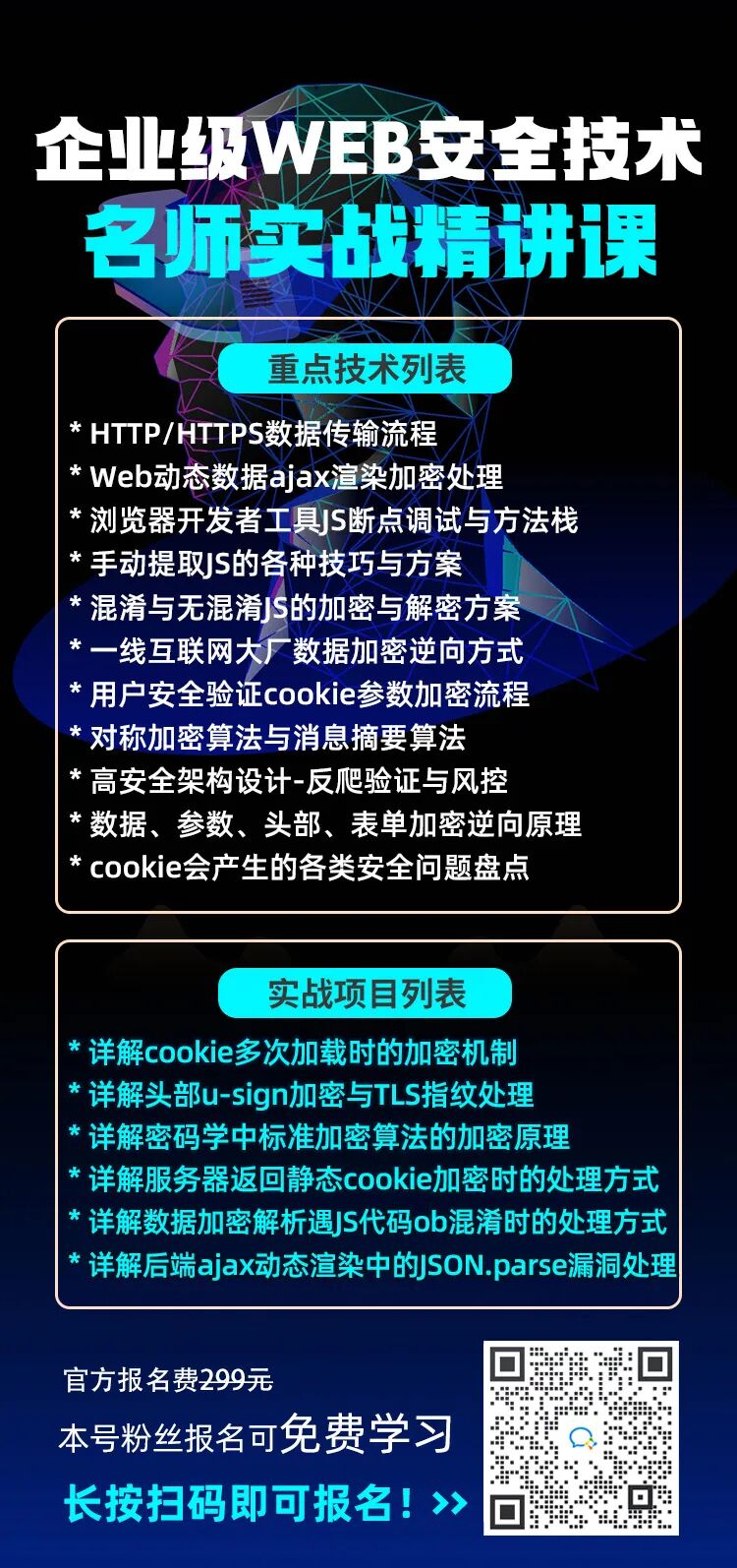 为此,我邀请了在人工智能和信息安全领域都颇有建树、且曾跻身国际大数据竞赛前四位的Python技术大佬-何老师,为大家倾力打造了一堂企业级Web安全技术名师实战精讲课!