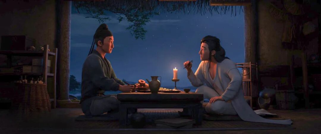《长安三万里》,扑面而来的是一份家国情怀,悲悯情怀。影片里的诗人们个性迥异、命运多舛,但背后都是对于家国天下、黎民苍生的深沉责任。无论是“长风破浪会有时,直挂云帆济沧海”,还是“江东子弟多才俊,卷土重来未可知”,都流露着对国家的忧思与报效国家的雄心壮志。李白初见高适,就为他写下“银鞍照白马,飒沓如流星”,视为知己。李白自己也有男儿雄心:“大鹏一日同风起,扶摇直上九万里”;想着有一天功成名就,要学范蠡遨游七十二峰:“事了拂衣去,深藏身与名”;