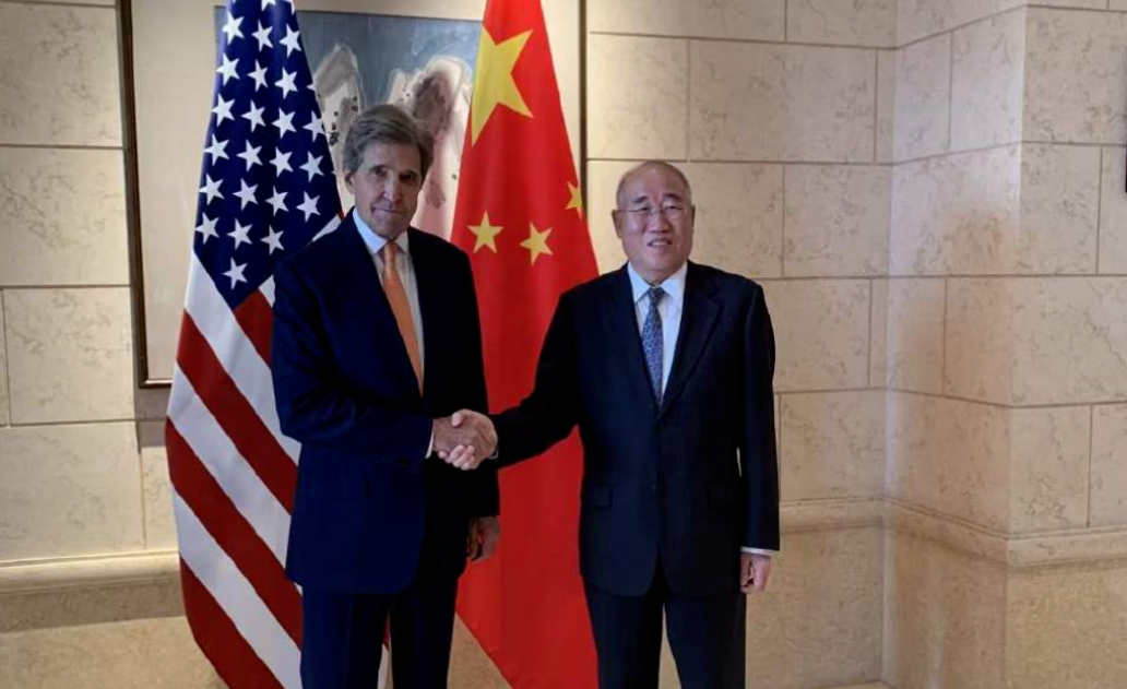 今天上午,中国气候变化事务特使解振华刚刚结束与美国总统气候问题特使约翰·克里的会谈。