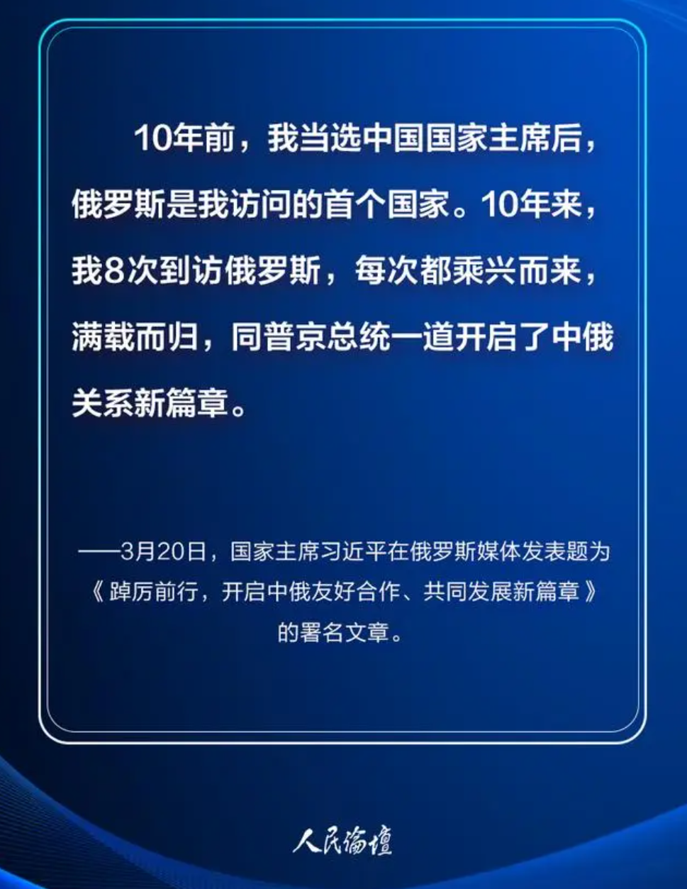 2023年3月20日,新一届领导班子确定后,最高领导人的首次出访,就是俄罗斯。