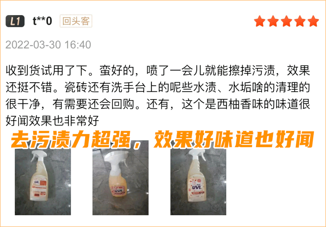 跟普通清洁剂的不同点是:味道不仅不刺鼻,还超好闻,而且是很少见的西柚味!