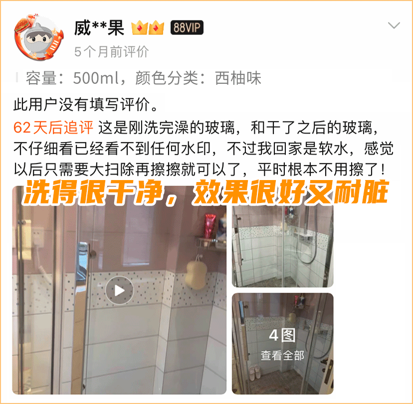 更逆天的你们在上面也见识到了,它还是一款能让你“偷懒”的浴室清洁剂。