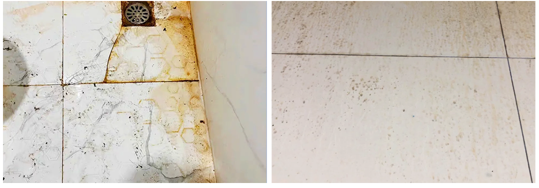 仔细看上面的动图,边角那些没喷到的地方用水是冲不掉的,真的是水垢~