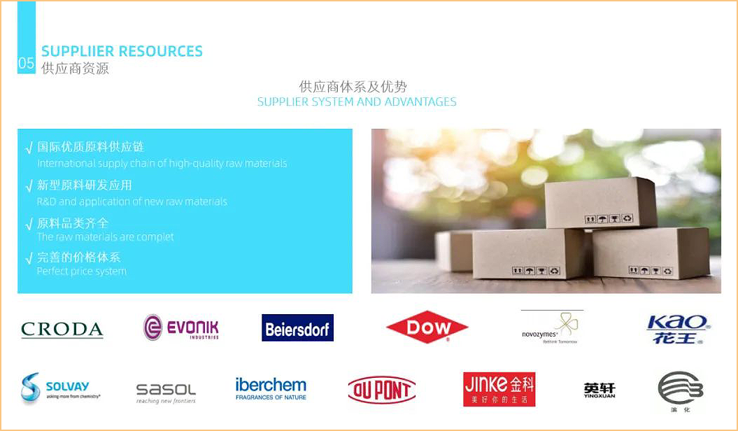 原料供应商也是国外知名品牌,CRODA、花王等。