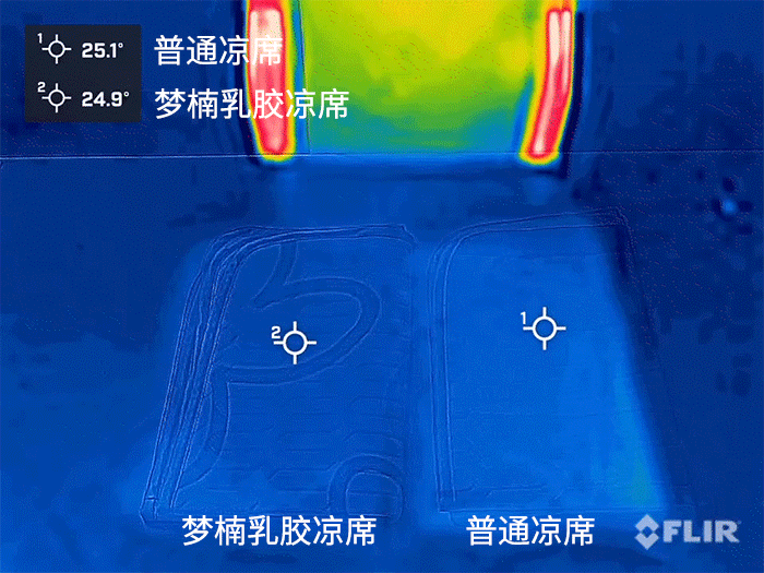 停后梦楠3秒速变冰凉蓝降为27.4度,普通凉感席37.5度火辣辣。