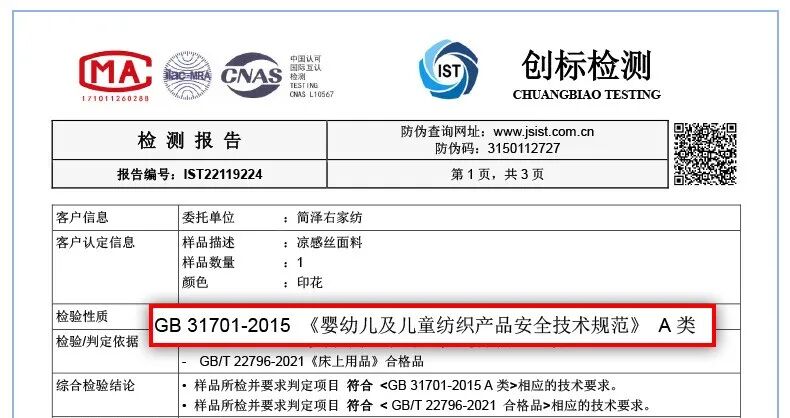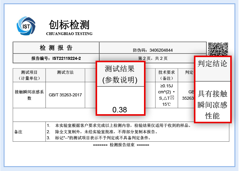 而这款拥有凉感报告的凉感席,国家权威证书指出: