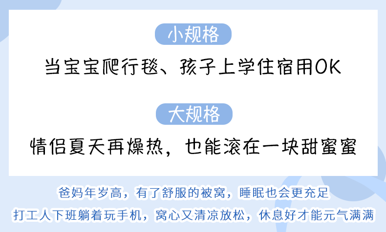 家里有宝宝的,在这款凉感席上爬来爬去、安心舒睡都不会磕碰到。