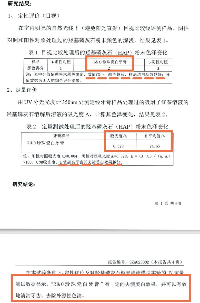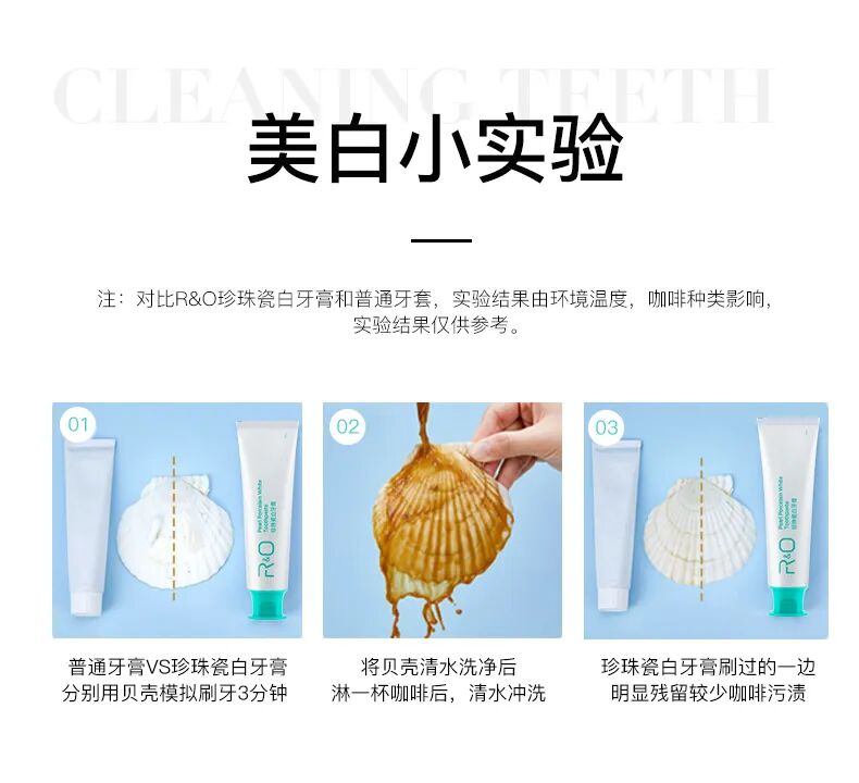 实验也可以证明,用R&O牙膏刷过的贝壳,更加难以被外源性色素沾染!