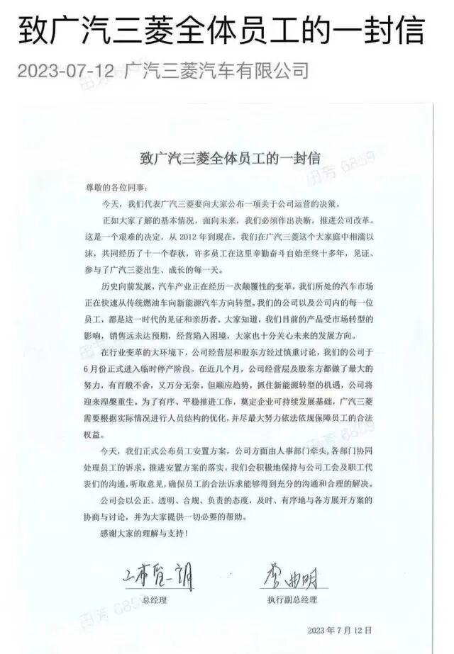 当《致广汽三菱全体员工的一封信》出现在网上后,广汽三菱的员工们应该预见到,差不多该和公司说再见了。2022年,广汽三菱只卖出了大约3.4万台新车,在卷得昏天暗地的中国汽车市场拿出这种绩效,即便没有立即毕业,基本上也属于苟延残喘了。到了今年Q1,这家中日合资车企的销量更是不足4000台,扁鹊来了也已经回天乏术。所以此时自我了断,对员工、股东可能都算是一种解脱。据说有员工拿了20万补偿,也有员工被分流到广汽埃安,对于普通打工人来说,也都属于不错的路子。现在有个问题我们想知道答案——三菱也算是一个知名品牌,属于日系“八大金刚”之一,广汽更是一方地头蛇,但为什么这俩合起来反而不太能打?合资太晚,难赚大钱