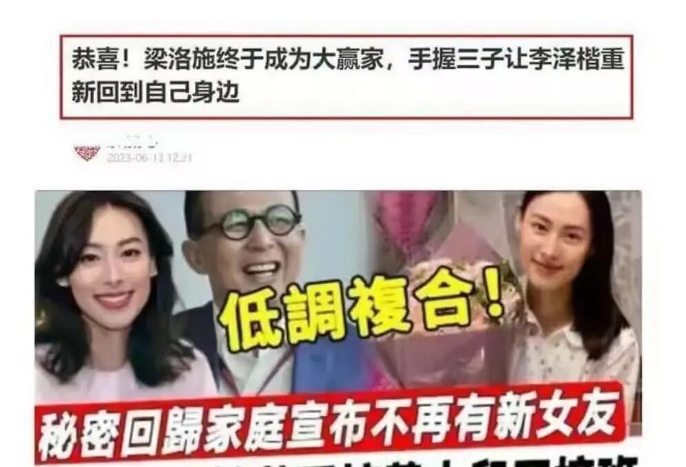 我们坚信,对于这样的成功人士,选择伴侣的标准肯定不会低。梁洛施和李泽楷的相识是在李泽楷去剧院看他朋友的演出,通过他的朋友认识了梁洛施。梁洛施是一名艺人,他们相爱后,李泽楷为她支付了高达2亿的金钱来解除她的合同,以恢复她的名声。不久之后,梁洛施的怀孕消息传出。