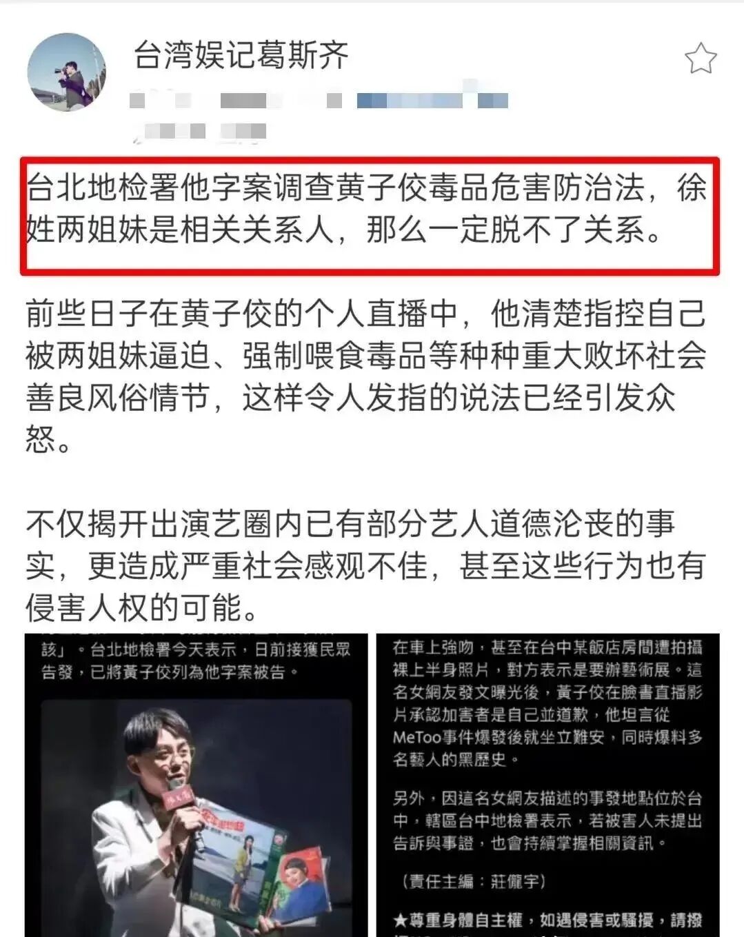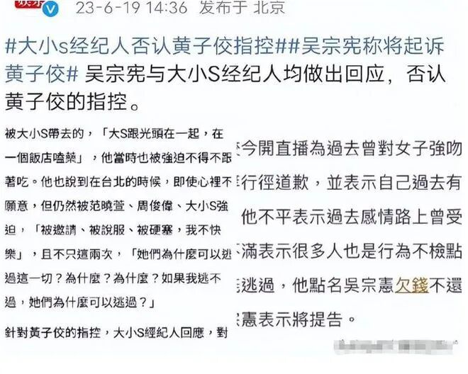 同事,黄子佼还一并曝光大小S因涉嫌吸食毒品、乱交趴体等丑事,甚至还表示自己曾遭到大小S、具俊晔等逼迫吸食毒品。
