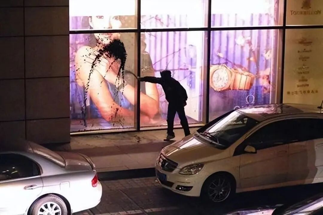 2009年的时候,有几个黑衣男子在章子怡家楼下,朝橱窗里的章子怡佩戴高档珠宝的巨幅海报泼黑墨,嘴里还大声嚷嚷着各种不堪入耳的辱骂章子怡的污言秽语。