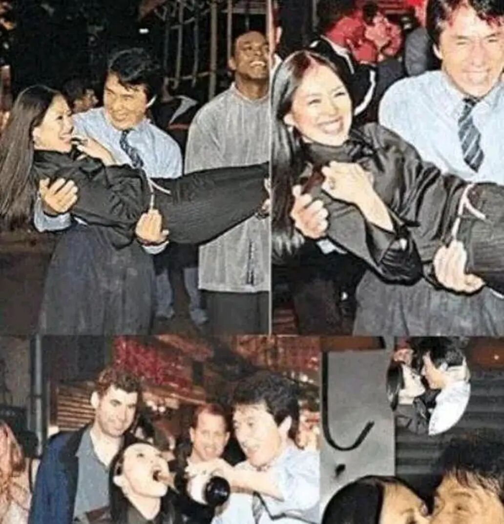 为了赢得成龙大哥的喜爱和推荐,她在成龙大哥的生日会上,与大哥亲密互动,拥抱搂肩,甚至大方地献上亲吻。在情绪高涨的时候,她还直接举起红酒对杯干。